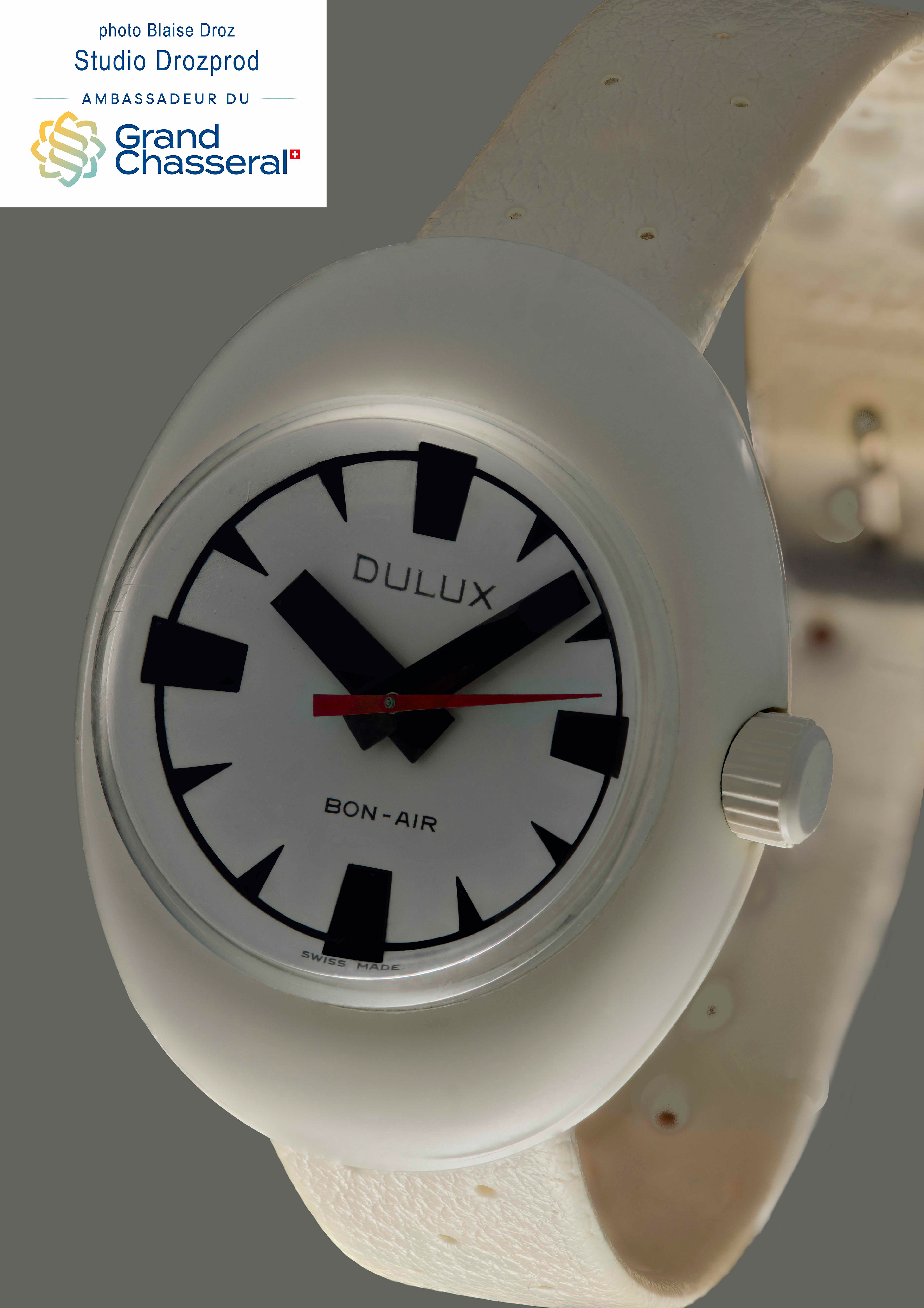 Montre Armand Nicolet dédiée à l'association Montre-moi Tramelan sur fond de calcaire du Grand Chasseral